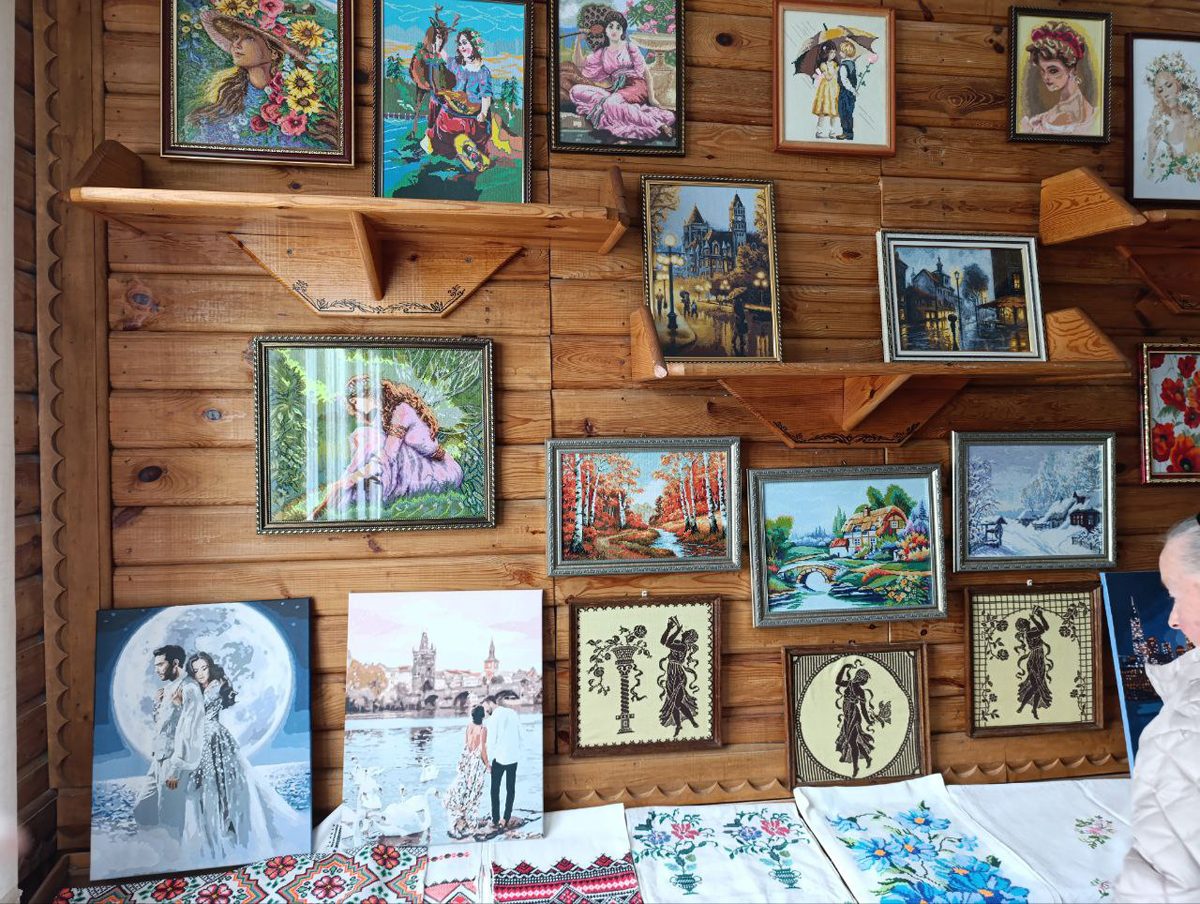 Вишивальниця – активна учасниця ветеранського хору «Надвечір’я», староста цього колективу. Чи не тому її вишиті роботи «звучать»: так тонко і виразно передає вона на полотні не тільки зображення, а й звуки. Ось б’ють копитами баскі коні, а тут тихо підкрадається кіт, або дзюрчить потічок. У цих картинах відчувається щось живе і тепле, в що було вкладено душу і світлі емоції, а це справляє враження на кожного, хто їх споглядає.