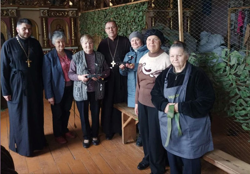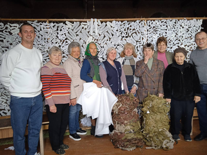 Вагомий внесок та окремої розповіді заслуговує сім’я Волинець Любові та Юрія, які раніше волонтерили у ВГО ПК "Отаман", а зараз дуже багато роблять для потреб храму і військових. Пані Любов при церкві – господиня. Всі жінки в один голос кажуть: "Дуже відповідальна та енергійна. З нами сітки плете, в храмі та на подвір'ї лад завжди тримає, а вдома – ще й випікає смаколики". Юрій поробив лавочки та стільчики для зручності плетіння, які жінки між собою прозвали "юрчиками".