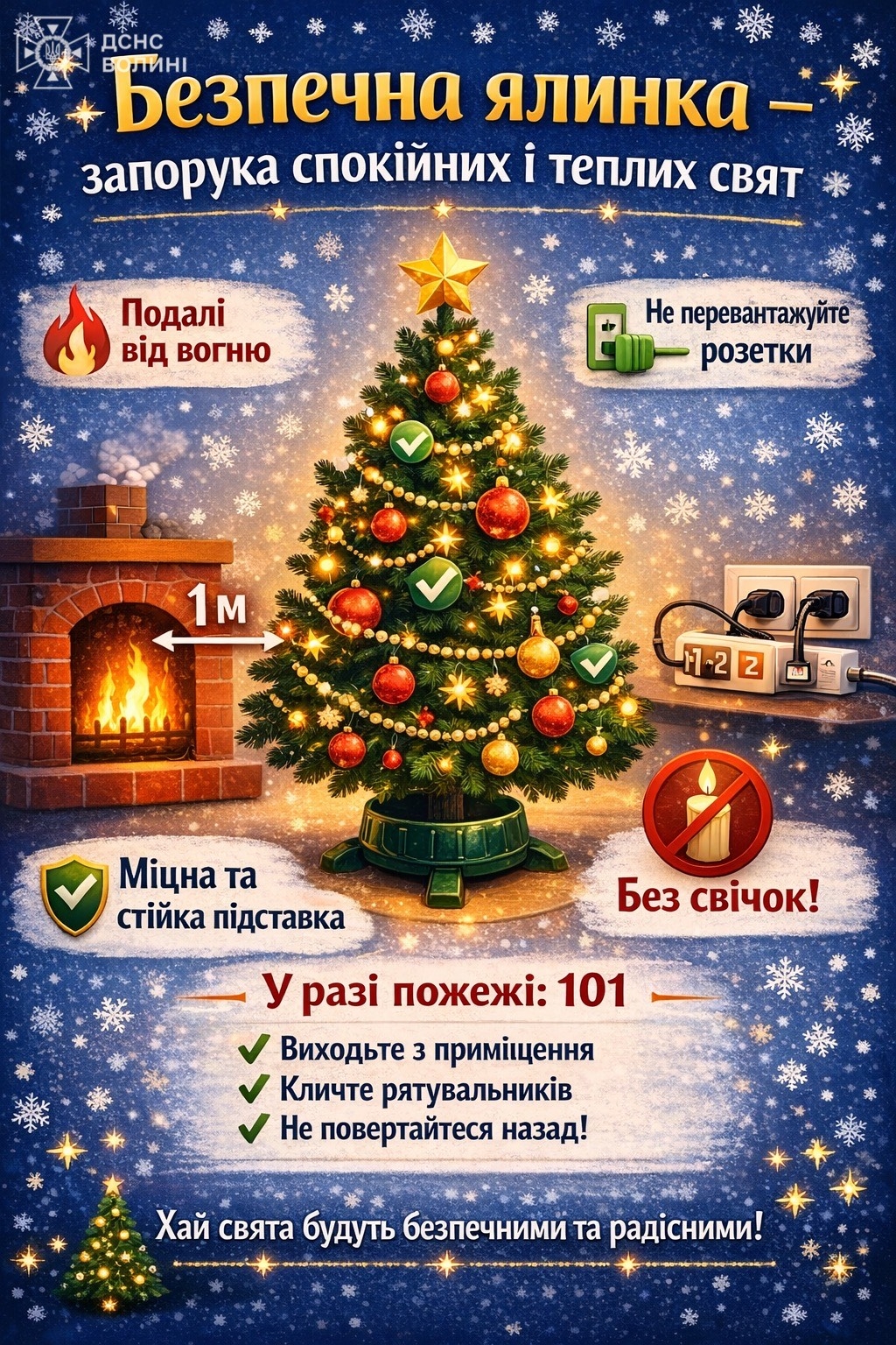 Рятувальники Ковельщини нагадують основні правила безпечного встановлення та прикрашання ялинки.