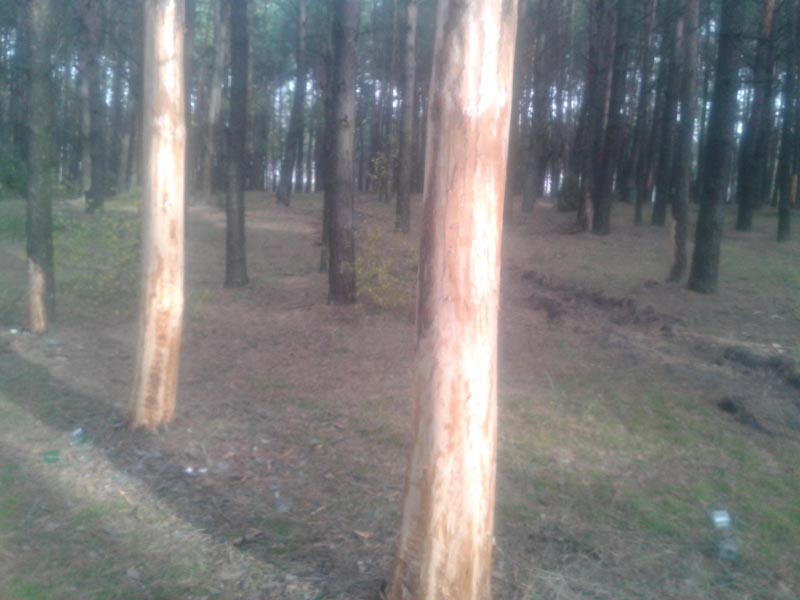 Сьогодні знову “ошкурено” 36 відбірних дерев і підготовлено до пиляння і крадіжки. Все це робиться поблизу дороги в районі водонапірної башти. Не думаю, що цього не знає лісничий.